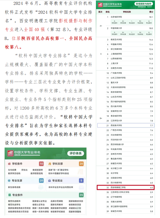 影视摄影与制作专业2023年4月备案审批,面向全国招生,并于同年获批学士学位授予权(艺术学学士、学制4年)。首次进入“软科”排名即跻身陕西省民办类高校第一名,源自ac米兰官方网站强力打造“教在明德”、“学在明德”的品牌建设、深入贯彻落实科教兴国战略,倾力打造高品质教师团队,奋力推进教育工作高质量发展的创新模式,引进了著名摄影家、教育家柏雨果教授,并担任影视摄影与制作专业学科带头人,其教学团队前身为成立于1998年“雨果摄影艺术学院”,影像类专业教育延续至今已26年,有着丰富的影像类教育经历。