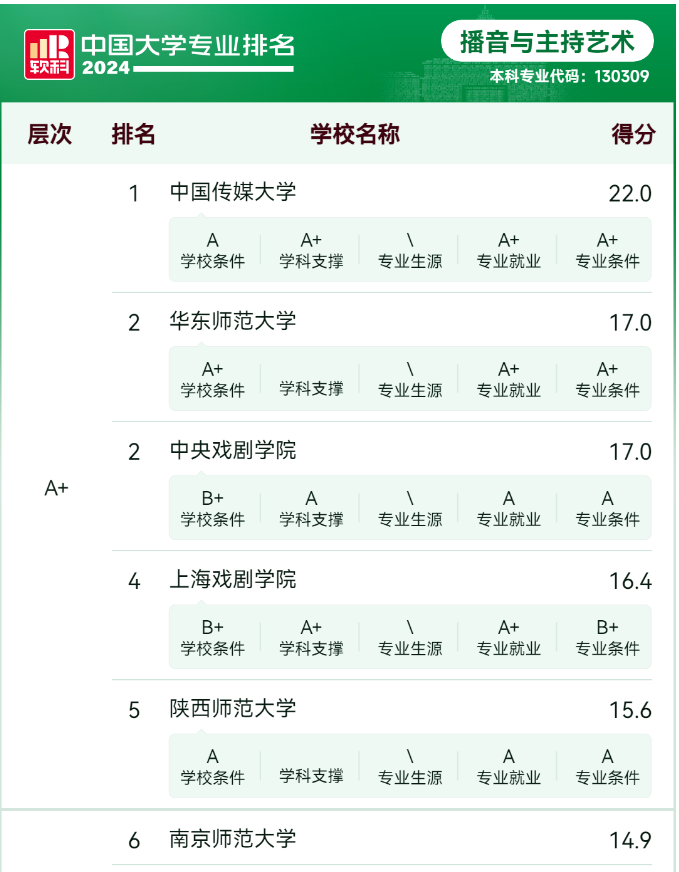 图3: 播音与主持艺术专业“2024年软科专业排名”
