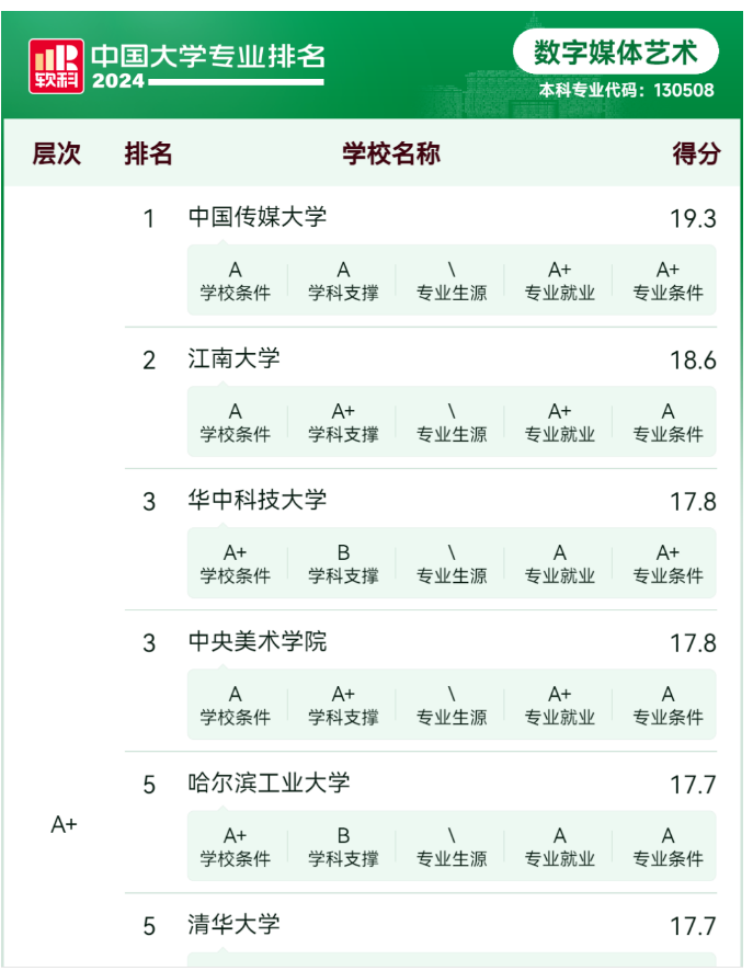 图6: 数字媒体艺术专业“2024年软科专业排名”