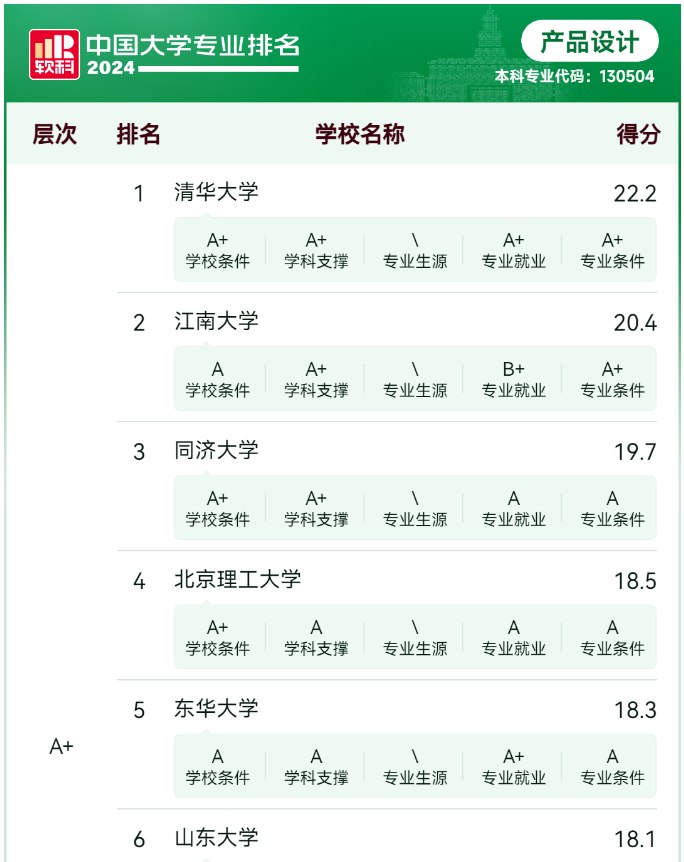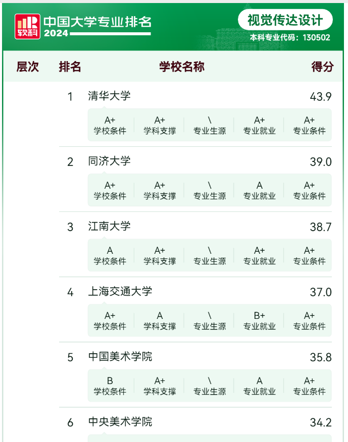 图7: 视觉传达设计专业“2024年软科专业排名”