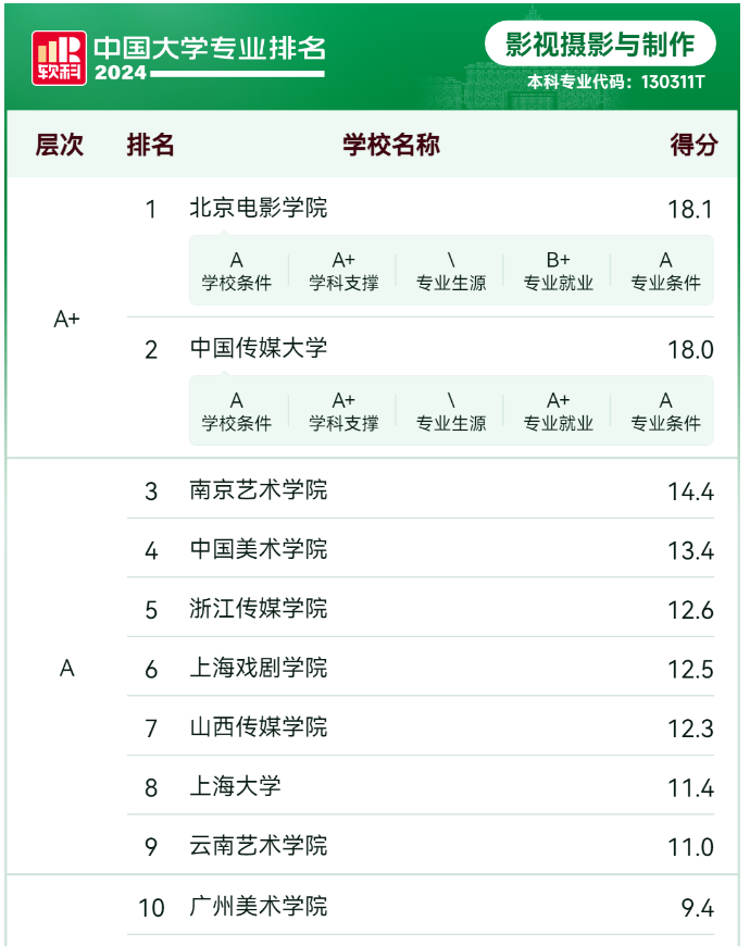 图4: 影视摄影与制作专业“2024年软科专业排名”