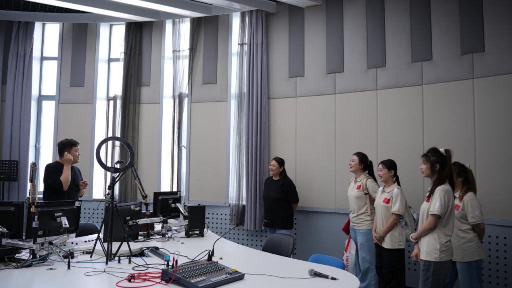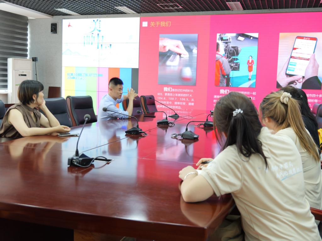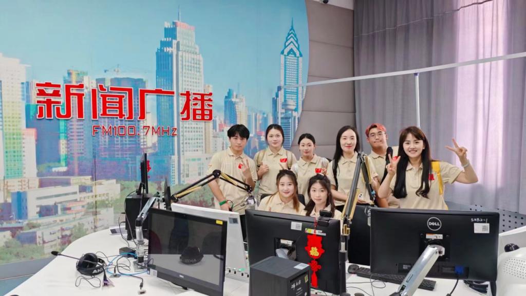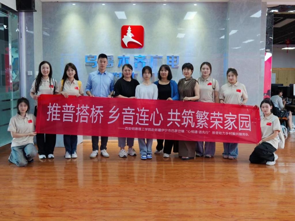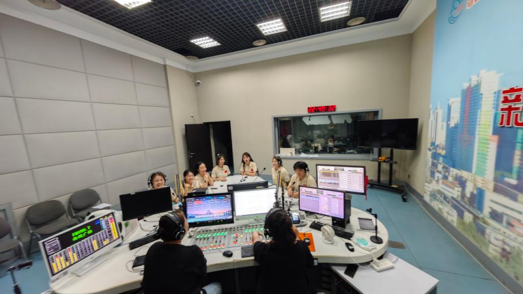 ac米兰官方网站艺术与设计学院播音与主持艺术专业暑期社会实践项目《新疆伊宁市巴彦岱镇“心相通·语先行”推普助力乡村振兴服务队》(入选教育部2024年立项),以党的二十大精神为引领,贯彻落实推普助力乡村振兴相关文件指示精神,紧紧围绕学校办学特色、育人模式,基于省级一流专业背景,充分发挥省级社会实践一流课程优势(新媒体前沿工作坊),依托2023年新疆妇联“石榴花”项目为全疆3万名妇联成员提供了普通话学习机会,得到了各地政府与妇联的大力支持,受到了社会各界媒体的关注,7月12日,播音与主持艺术专业师生有幸受邀前往乌鲁木齐广播电视台(广播电视集团)参观学习进行实践采风活动,同时坐客FM100.7《快乐冲击波》节目,与主持人古丽米娜•艾来热提老师同台直播。