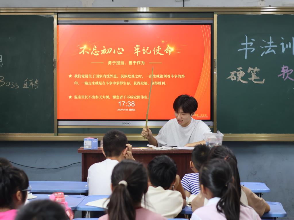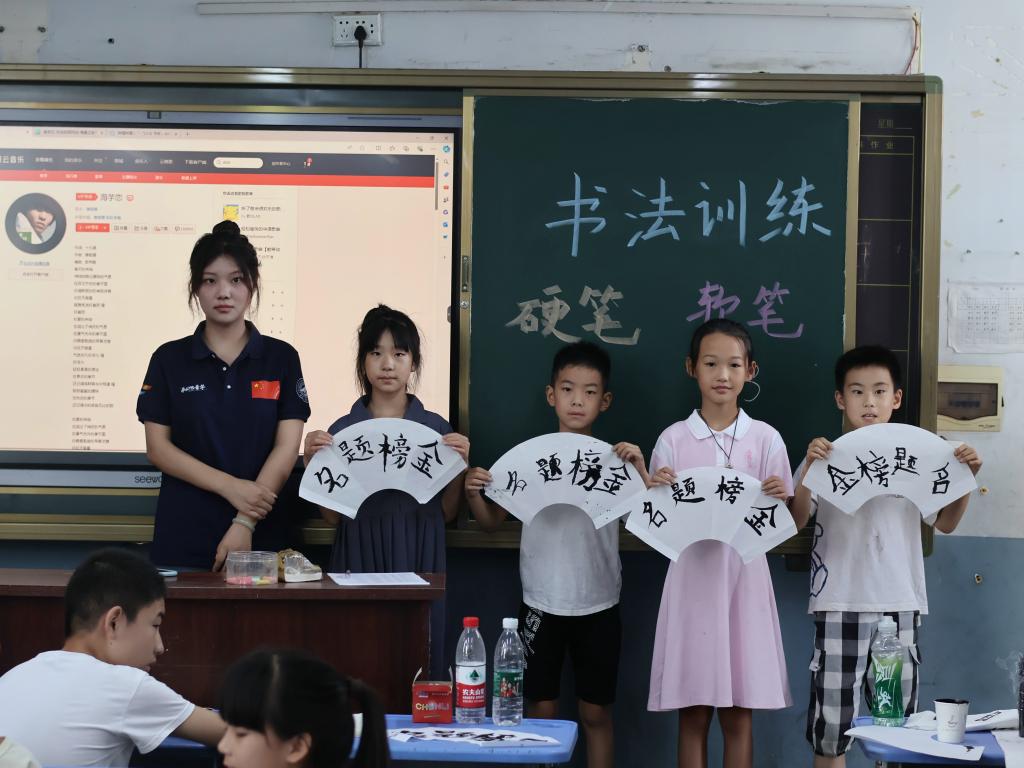 实践队成员通过角色扮演、情景对话等创新方式,通过互动游戏、诗歌朗诵,让孩子们在轻松愉快的氛围中练习普通话,提高他们的语言表达能力和自信心,帮助他们掌握正确的发音和语调、培养绘画兴趣、通过书法和剪纸体会中华文化的博大精深和独特魅力,同时通过舞蹈合唱为乡村文化的传承注入新的活力,激发了孩子们学习的兴趣。