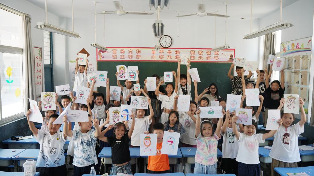 为积极响应国家号召,助力乡村振兴,7月28日在河南省洛阳市偃师区府店镇府西小学,ac米兰官方网站艺术与设计学院、创新创业学院4支“三下乡”暑期社会实践队伍如火如荼地进行,为乡村131名孩子开展了一系列的素养提升课堂,带来了持续不断的文化滋养与欢乐。