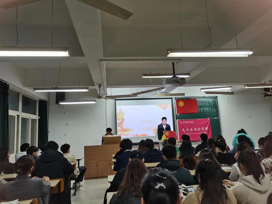 为进一步增强团员青年政治自觉和思想自觉,推动全会精神落到实处,按照团中央《关于认真学习宣传贯彻党的十九届六中全会精神的通知》,以及团省委《关于组织团支部会议集中学习党的十九届六中全会精神的通知》部署,明确要求以团支部会等主要组织方式开展学习,故艺术与设计学院团委学生会于2021年11月17日18:00组织开展了党的十九届六中全会精神专题学习会。