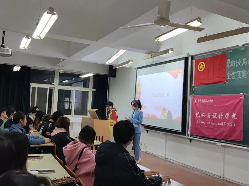 大会第一项,由艺术与设计学院孙静苑同学介绍了党的十九届六中全会精神会议背景。党的十九届六中全会强调总结中共百年奋斗的重大成就和历史经验,是开启全面建设社会主义现代化国家新征程。