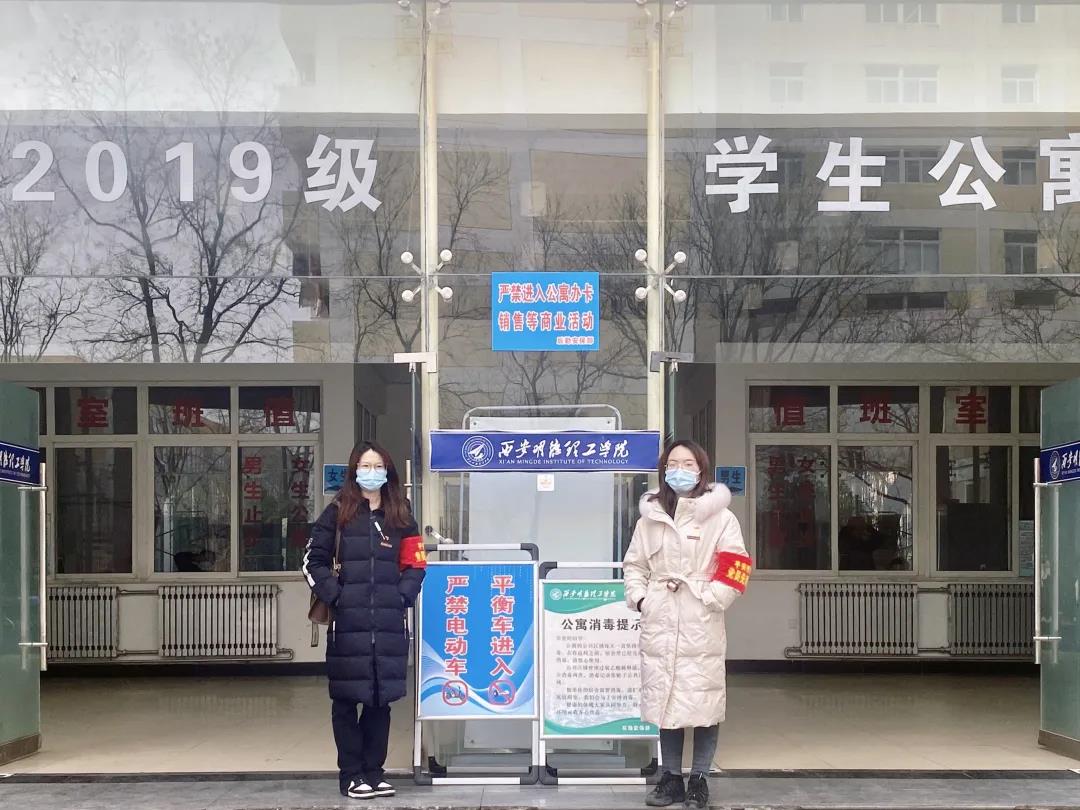 “疫情防控,人人有责”,艺术与设计学院党员先锋队的师生们轮班驻守在学生宿舍楼门口,不厌其烦地提醒着进出学生佩戴口罩,进门洗手。只为通过不断的提示来加强学生们的疫情安全防范意识。