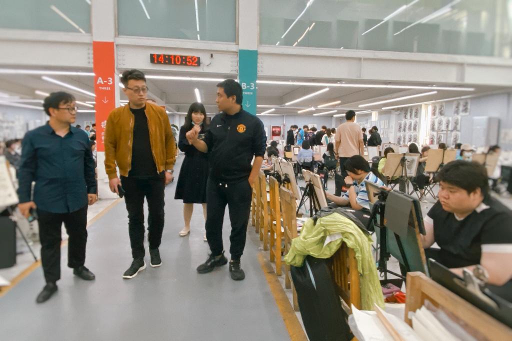 在丹青易考美术学校杨战校长的陪同下,对该校校园进行了参观,对该校环境、办学条件、生源质量、校园文化等有了直观了解。随后,双方进行了座谈交流。西安明德理工学院艺术与设计学院副院长李琨、冯强对艺术与设计学院发展概况、专业概况以及未来规划进行了介绍。视觉传达设计专业负责人于泳、数字媒体艺术专业负责人肖瞳、产品设计专业负责人高俊杰分别就学院设计专业做了详细地介绍。