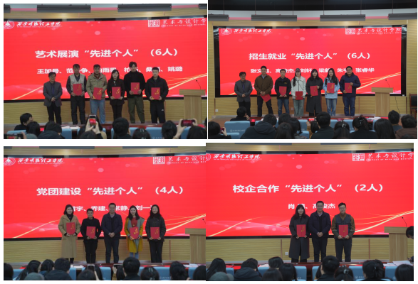 大会伊始,党委副书记乔建宣读了艺术与设计学院2024年关于“先进个人”的表彰决定。学院院长苟秉宸、副院长冯强、党委副书记乔建共同为荣获“先进个人”的教师颁发荣誉证书。苟秉宸院长对获得“先进个人”的教师表示热烈的祝贺,并高度赞扬了他们在教学评建、科研创新、文化育人、实践育人以及学生培养等方面的卓越贡献。他号召全体教职工以获得荣誉的教师为榜样,凝心聚力,迎评促建,共同推动学院各项工作高质量发展。