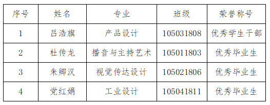 艺术与设计学院2022届陕西省优秀毕业生和优秀学生干部评选结果公示