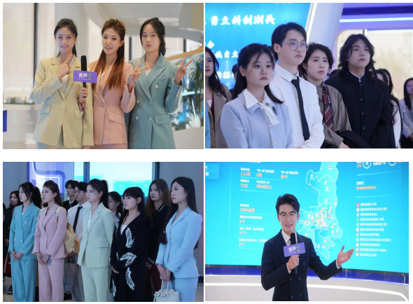 实践成果展示:随后,师生们踏入了秦创原科技成果展示中心,身临其境地体验了人工智能、新能源、高端装备制造等领域的最新创新成果。播音与主持艺术专业的学生们充分发挥专业特长,现场讲解秦创原科技展厅的亮点内容,完成了短视频创作、现场报道、展厅讲解等一系列实践作业。他们以实际行动践行了新闻工作者的“脚力、眼力、脑力、笔力”,将课堂所学与实践紧密结合。