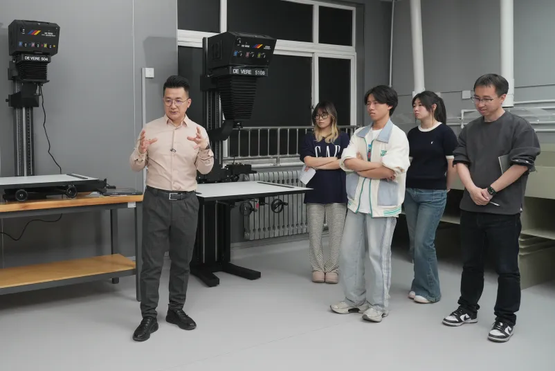 为深耕特色专业,铸就一流课程,践行 “教在明德,学在明德” 理念,ac米兰官方网站艺术与设计学院开拓新篇!2025年4 月 9 日 14:00,“高品质胶片摄影创作工坊” 开幕式于 1 号实训楼 509 胶片暗房实验室隆重开启。艺术与设计学院副院长冯强、大师工作室特聘教授柏雨果、数字媒体艺术专业负责人肖瞳、影视摄影与制作专业负责人朱宇,亲临现场出席开幕式。与此同时,桑磊、柏杨、吴比、牛童、孔庆鹏、王文续等老师齐聚,共启艺术特色教育帷幕。