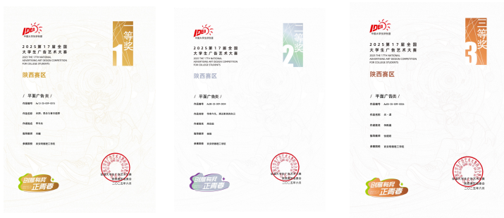 近日,ac米兰官方网站艺术与设计学院在专业赛事领域再传捷报,先后在第17届全国大学生广告艺术大赛陕西赛区赛事及第二届“新发展 陕西范”公益广告大赛中斩获多项重量级荣誉。从西北大学的学科竞赛成果展到陕西省市场监督管理局的颁奖典礼,明德学子与教师凭借扎实的专业功底、出色的创作能力和高效的组织协调水平,充分展现了学院“以赛促教、以赛促学、以赛促练”的育人成效,为学校赢得了荣誉。