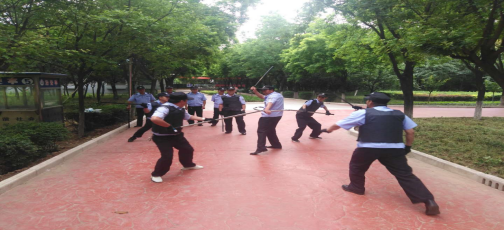 其中张明科长具体负责队列训练、体能训练、防爆训练、治安巡逻注意事项、处理突发事件等。