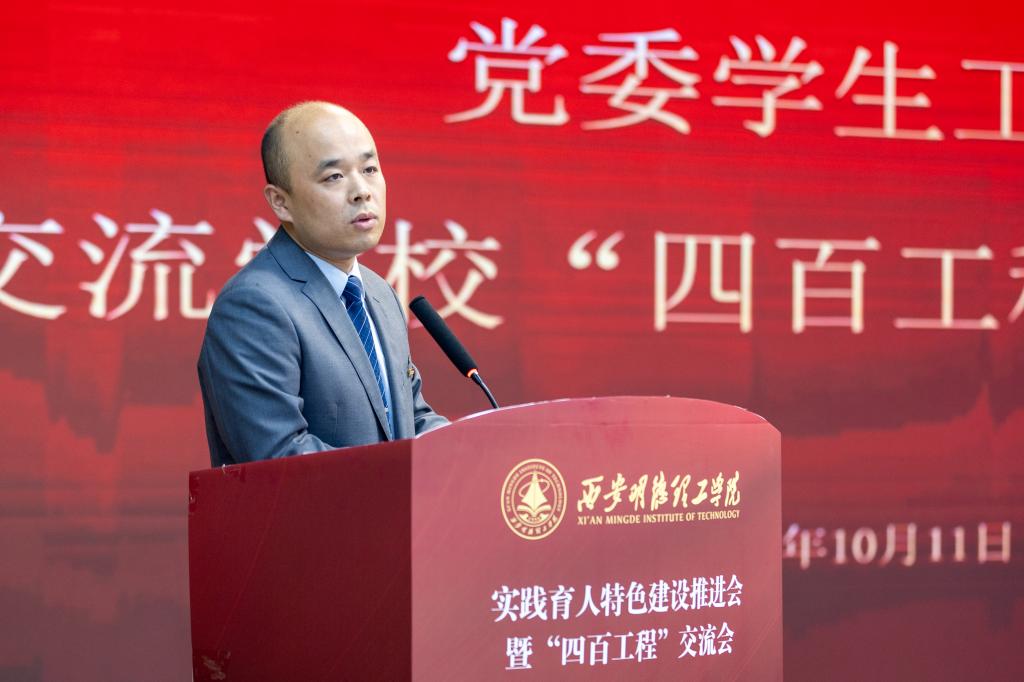 为推进学校实践育人特色建设,不断增强实践育人工作的自觉性、针对性和实效性,彰显实践育人办学特色,10月11日下午,学校实践育人特色建设推进会暨“四百工程”交流会在建德楼203报告厅召开。会议以“聚焦应用型人才培养和高质量发展,扎实推进实践育人体系建设和特色培育”为主题。全体校领导、职能部门和教辅单位负责人、二级学院领导班子成员、专业负责人、教研室主任、教师代表、学生代表等300余名师生参加了会议。会议由副校长朱延波主持。