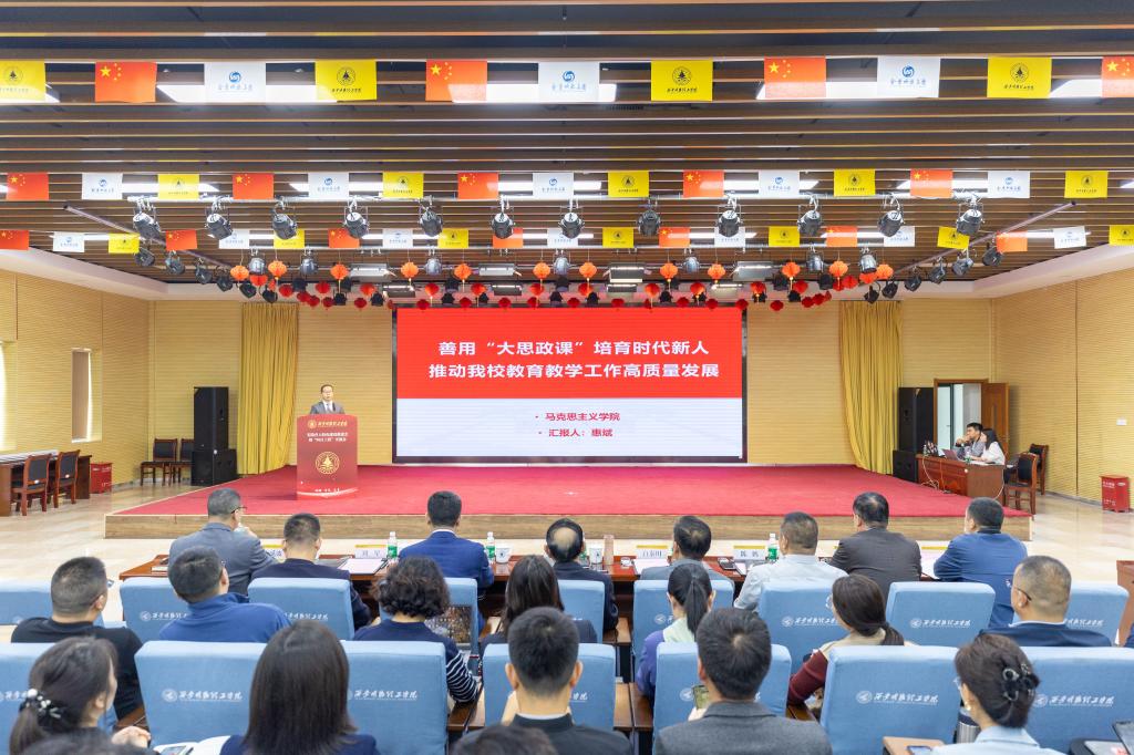 马克思主义学院副院长惠斌,以“善用‘大思政课’培育时代新人,推动学校教育教学工作高质量发展”为主题,就学校“大思政”育人建设情况进行了汇报。学校以“铸魂红色基因,赋能思政课堂;弘扬明德文化,涵育时代新人;学思践悟结合,重视实践锻炼;贴近学生实际,提高德育实效;创新育人模式,丰富育人手段”为思路,聚焦立德树人根本任务,紧盯理论武装、组织管理、师资队伍、实践育人等关键环节,调动全社会力量和资源,积极推进“大思政课”育人体系建设,着力培养堪当民族复兴大任的时代新人。