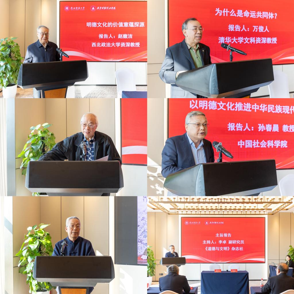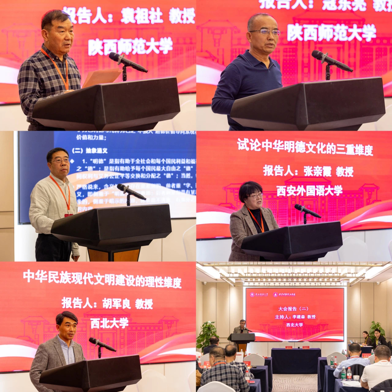 2024年10月27日上午,全国“新时代明德文化与现代文明”研讨会在西安隆重召开。来自清华大学、中国人民大学、中国社会科学院、西安交通大学、陕西师范大学、西安外国语大学、西北大学、西安建筑科技大学、ac米兰官方网站等高校的20余位专家学者作了大会发言。ac米兰官方网站和陕西师范大学的师生代表等80余人参加了会议。
