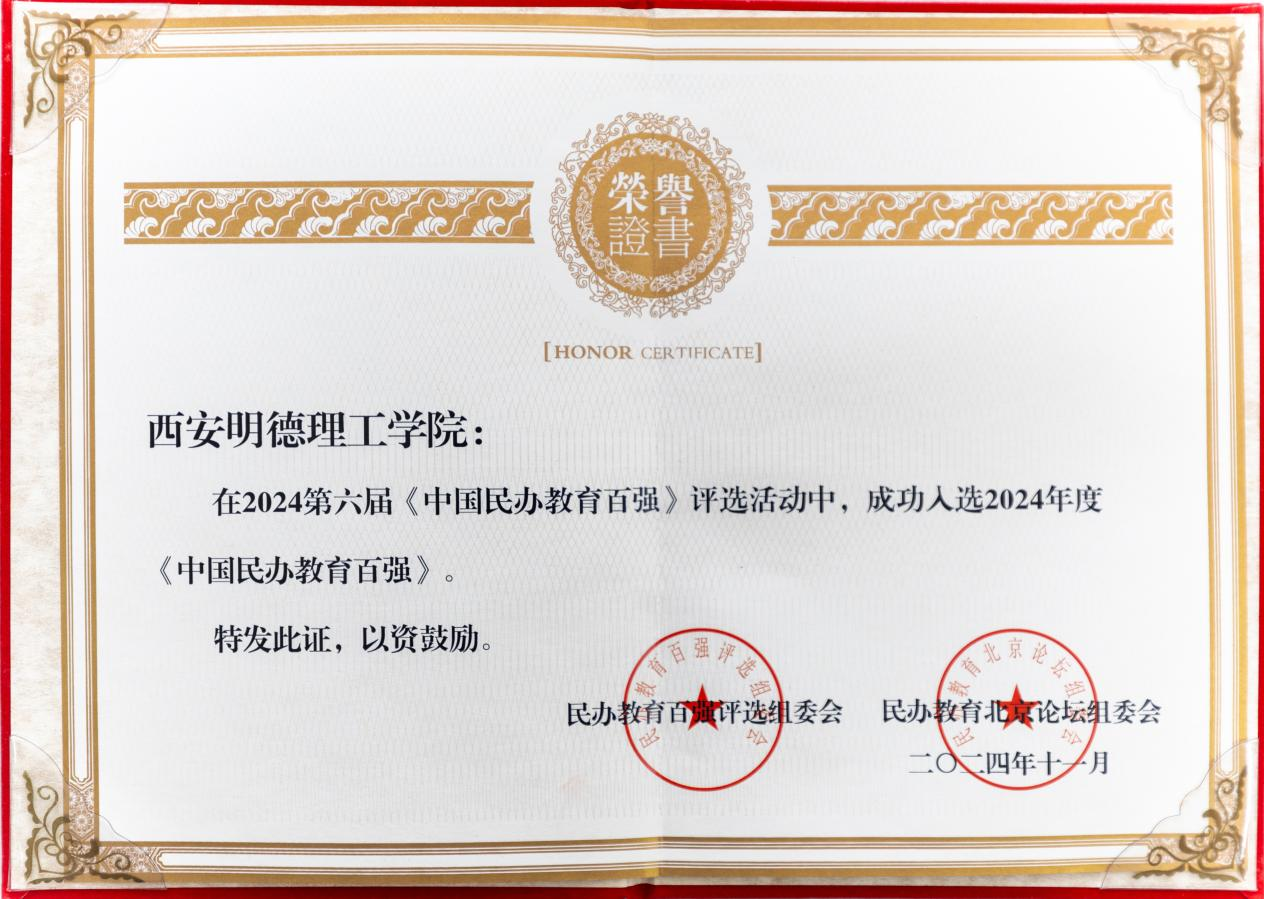11月25日至26日,由中国民办教育百强评选组委会和第六届民办教育北京论坛组委会联合举办的第六届“中国民办教育百强”发布会颁奖典礼在北京大学举行。学校凭借先进的办学理念、良好的社会声誉、雄厚的办学实力被组委会授予2024年度“中国民办教育百强”荣誉称号。