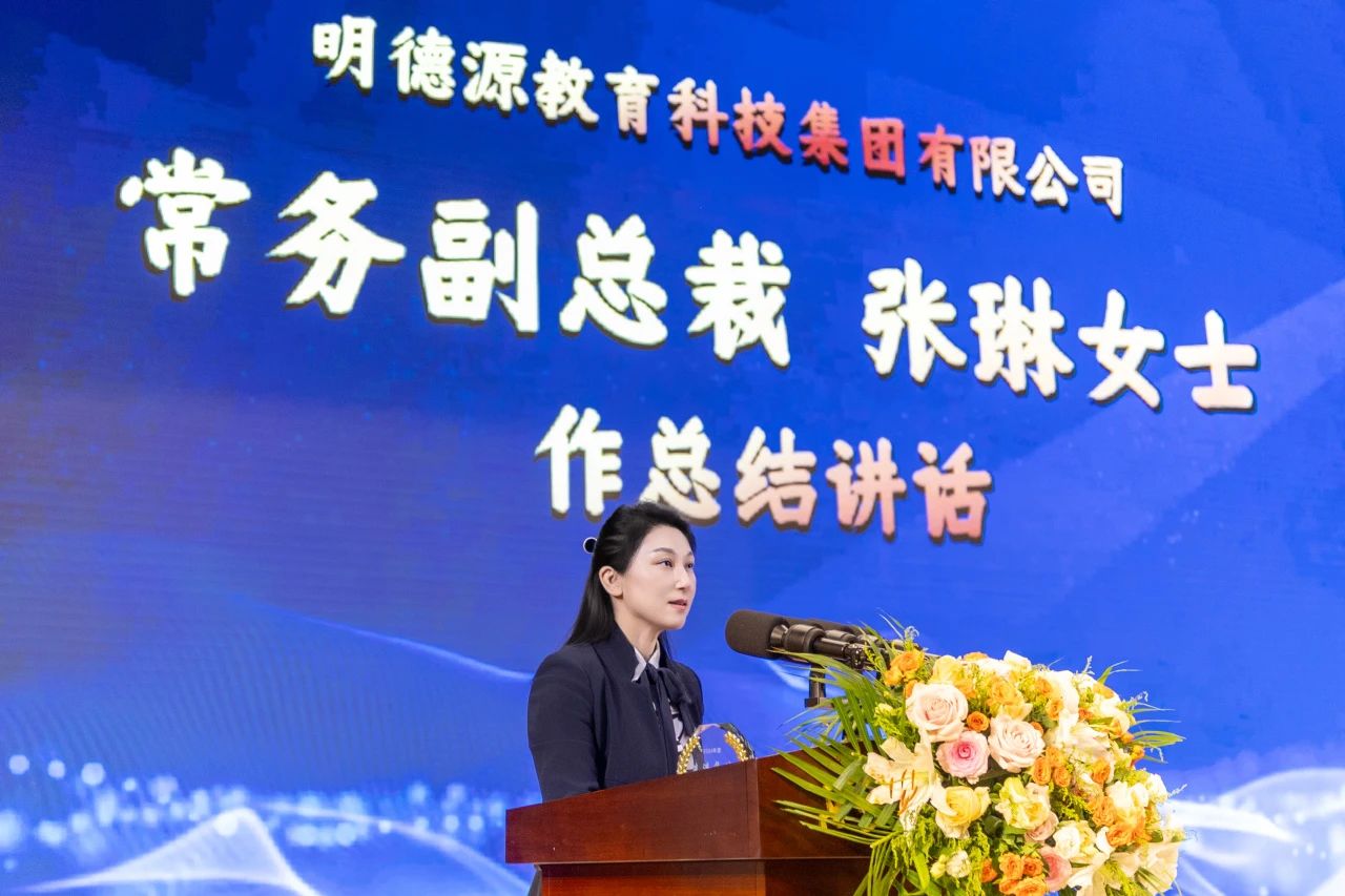 张琳女士号召:全体员工以表彰为起点,以责任书签约为誓言,以团结一心的精神、风雨无阻的勇气、日夜兼程的执着,共同谱写明德源教育事业发展的新华章。