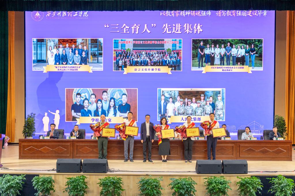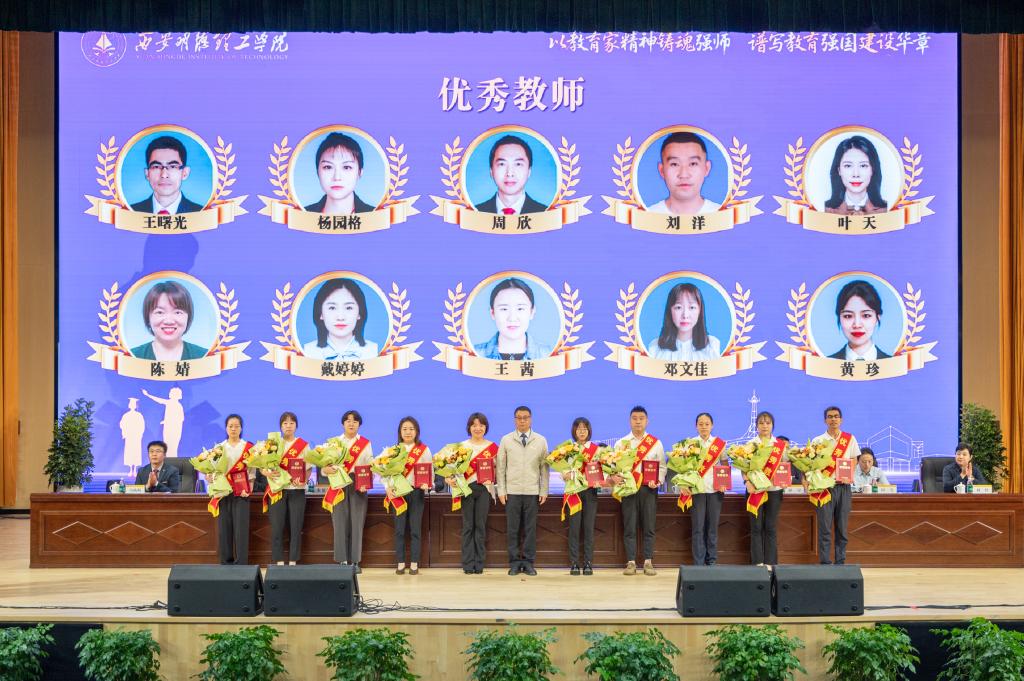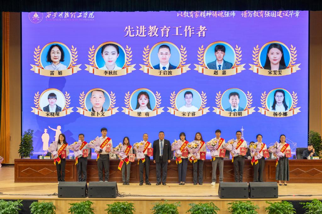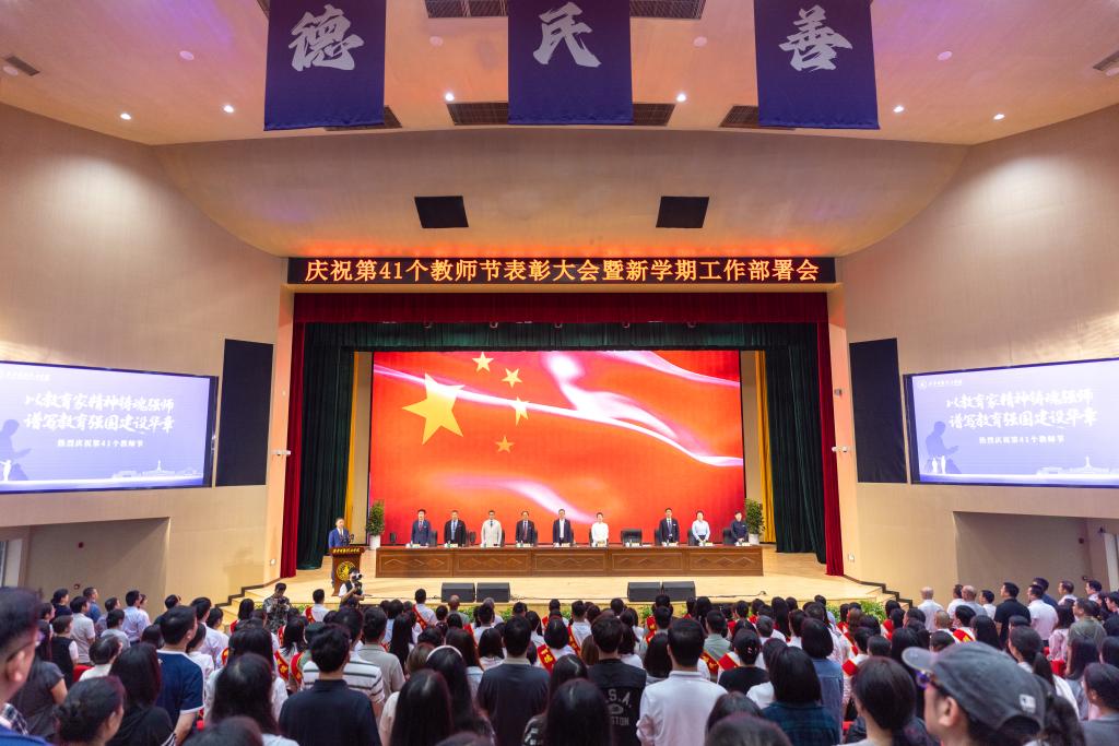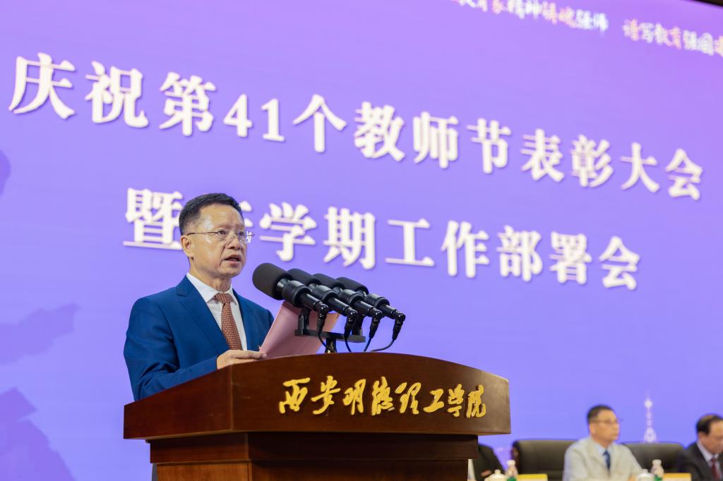 在第41个教师节来临之际,他代表学校领导班子,向全校教职员工以及受表彰的集体和个人表示亲切问候、衷心祝贺和崇高敬意!王校长对学校上半年及暑期工作成效做了简要回顾,提出了新学期工作的指导思想和主要思路。他强调,下半年工作要以“五个着力”作为重点工作任务:一是着力提升党建和思政工作水平,引领推动学校高质量发展;二是着力评建整改和评估达标建设,坚决打赢评建攻坚战;三是着力强化学生思政教育工作和就业工作,构建高质量学生思政教育与管理服务工作体系;四是着力转变教育思想观念,扎实做好“十五五”规划研制工作;五是着力抓好校园安全稳定工作,夯实学校高质量发展根基。王校长结合教学评建工作,提出了聚焦评建整改工作,聚焦数据核查工作,聚焦重点工作,聚焦特色建设和亮点打造,聚焦评建氛围营造等“五个聚焦”的主要任务。并就如何做好新学期工作,高质量完成评建目标任务,强调了四点要求:一是要强化责任担当抓落实;二是要把握内涵要求抓落实;三是要形成工作合力抓落实;四是要强化统筹推进抓落实。希望全校教职工继续保持旺盛工作热情和饱满工作干劲,以更高标准、更优质量和更大成效,坚决打赢教学评建攻坚战,为明年顺利通过教育部评估奠定坚实基础。