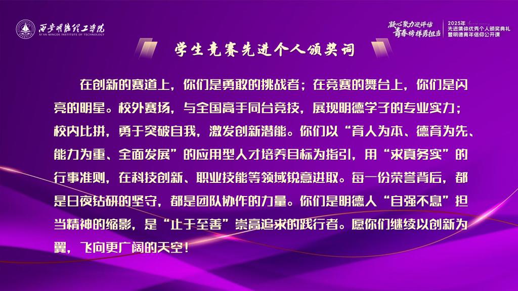 《学生竞赛先进个人》颁奖词