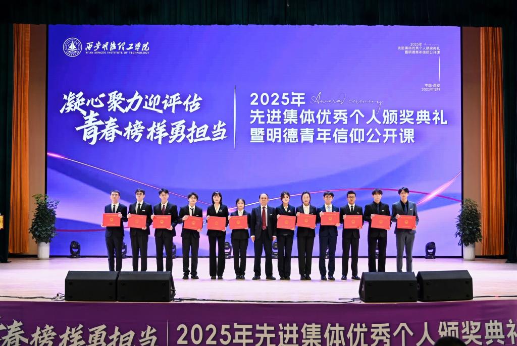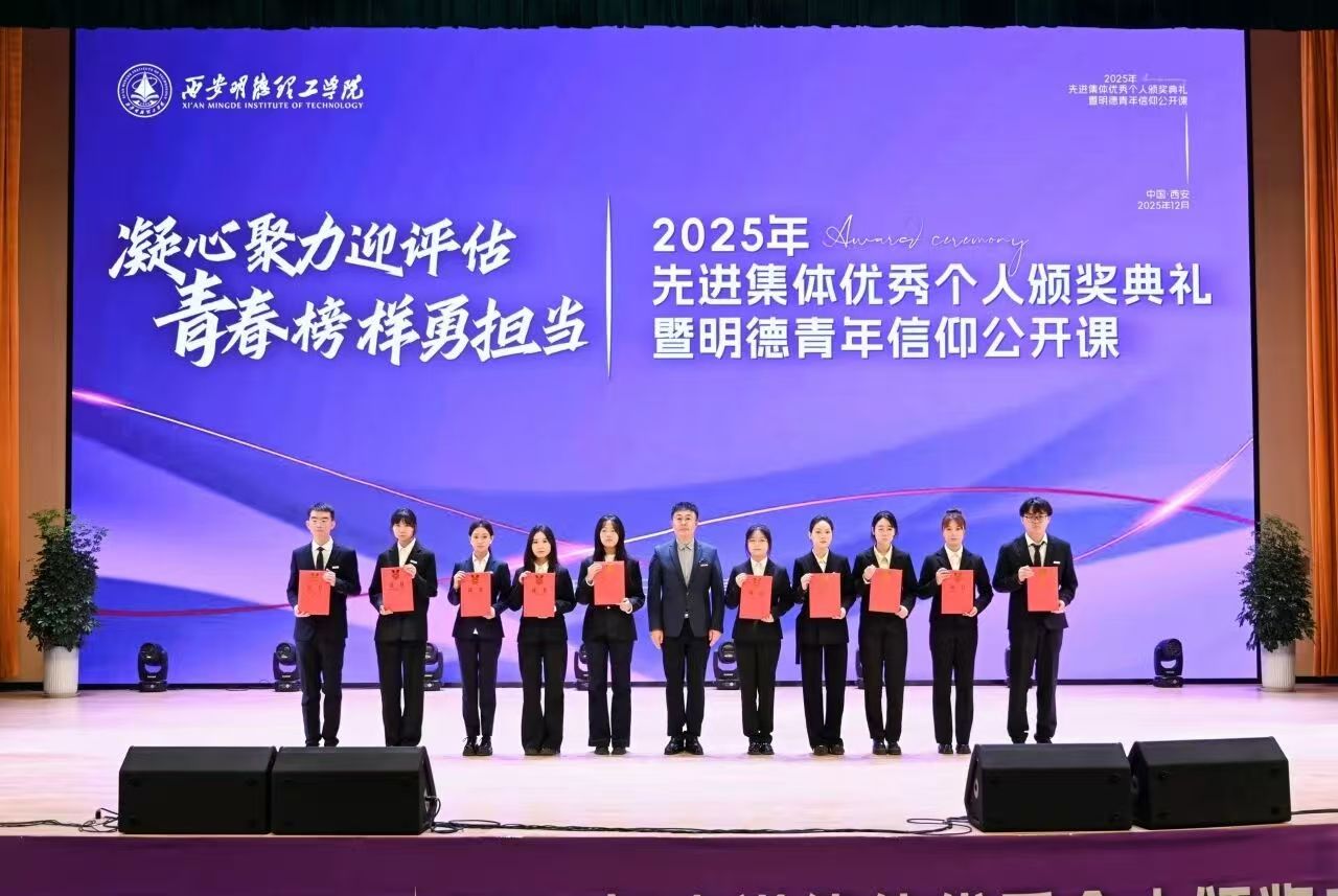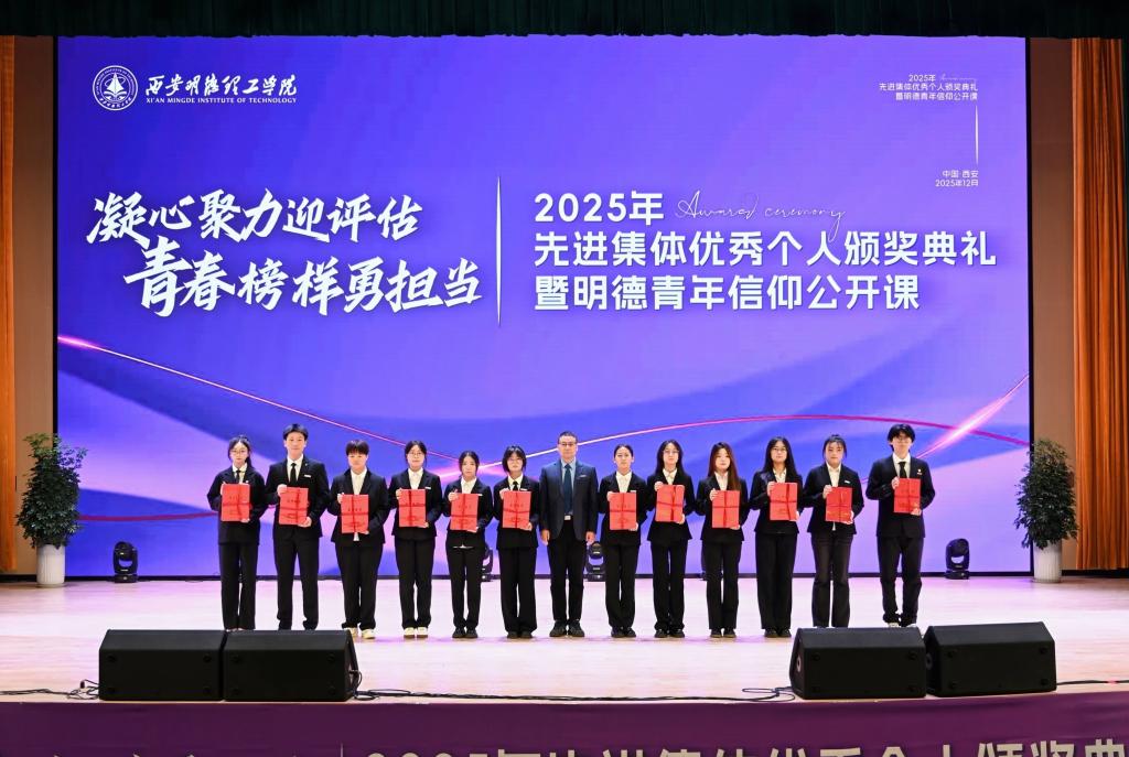 为表彰先进,树立榜样,激励更多青年学子奋勇前行,12月10日,学校在四季廊桥报告厅举行“凝心聚力迎评估 青春榜样勇担当”2025年先进集体、优秀个人颁奖典礼暨明德青年信仰公开课,表彰过去一年师生群体中涌现的先进集体和优秀个人,共同见证明德学子的收获与成长。