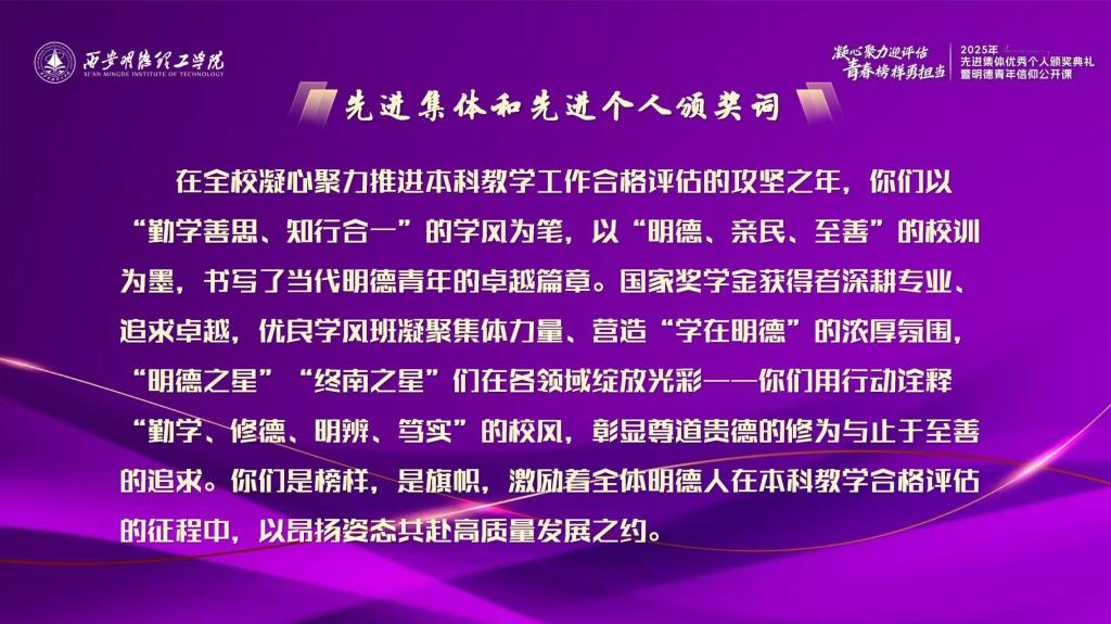 凝心聚力迎评估 青春榜样勇担当 ——学校举行2025年先进集体、优秀个人颁奖典礼暨明德青年信仰公开课