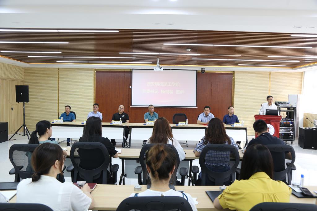 仪式最后,学院领导向新入职教职工代表颁发了校徽,新入职教职工代表、经济与管理学院周腾老师作了发言。