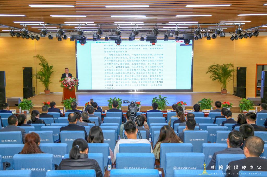 教务科研部部长朱延波代表新任职中层干部作了表态发言。他表示将以新的姿态,新的境界尽快融入新的角色,切实担负起岗位赋予的职责和使命,践行创新发展理念,坚持革新图强,为学院教育事业发展贡献力量。