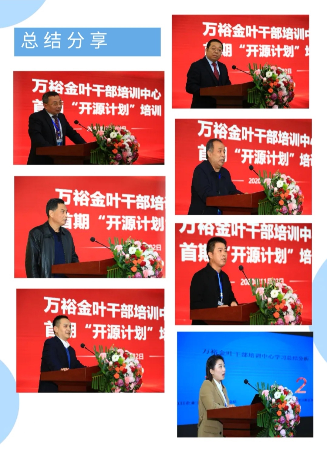 授课培训结束后,金叶科教集团公司高管及各子公司、学院负责人及教师代表分别做了总结分享。
