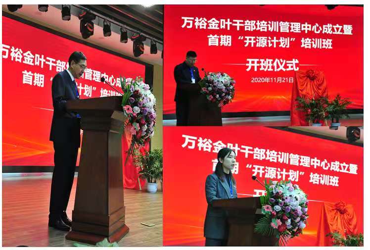 著名企业家、万裕集团董事长、金叶集团董事局主席兼总裁、ac米兰官方网站董事长袁汉源先生在典礼上发表重要致辞,就贯彻集团公司整体战略规划和中长期人力资源规划发展目标,培养“专业化、职业化、高素质”的干部队伍作了动员,对成立万裕金叶干部培训中心和强化人才培养、提升干部综合素质寄予厚望。