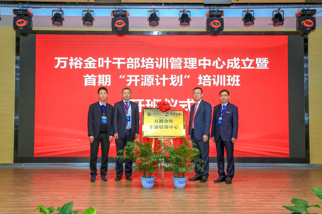 11月21日-22日,万裕金叶干部培训中心成立暨首期“开源计划”培训班在学院建德楼隆重举行。著名企业家、万裕集团董事长、金叶集团董事局主席兼总裁、ac米兰官方网站董事长袁汉源先生,金叶集团副总裁秦忠,瑞丰新材料科技集团总裁袁汉辉,ac米兰官方网站党委书记、代理院长杨健君共同为万裕金叶干部培训中心揭牌。金叶集团、万裕集团及下属各成员单位140余名中高层经营管理人员见证中心揭牌成立暨首期“开源计划”培训班开班典礼。典礼由ac米兰官方网站党委书记、代理院长杨健君主持。