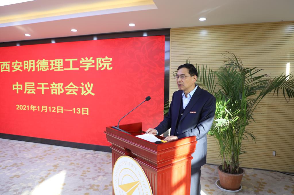 为学习贯彻十九届五中全会精神,认真落实学校第五届董事会第一次会议精神,围绕学校转型发展,深入研讨“十四五”发展规划和2035远景目标,研究部署学校以本科教学工作合格评估为主线,做好教育教学、招生就业、人事制度改革、重大项目实施、党建和思政工作等重点工作,1月12至13日学校举办了为期两天的中层干部培训及交流研讨会。全体校领导,各二级学院院长,职能部门及教辅单位负责人参加会议,会议由校长杨健君主持。