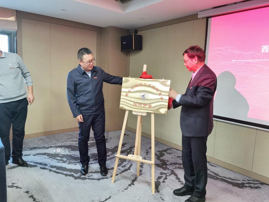 校长杨健君为榆林分会揭牌并进行赠旗。