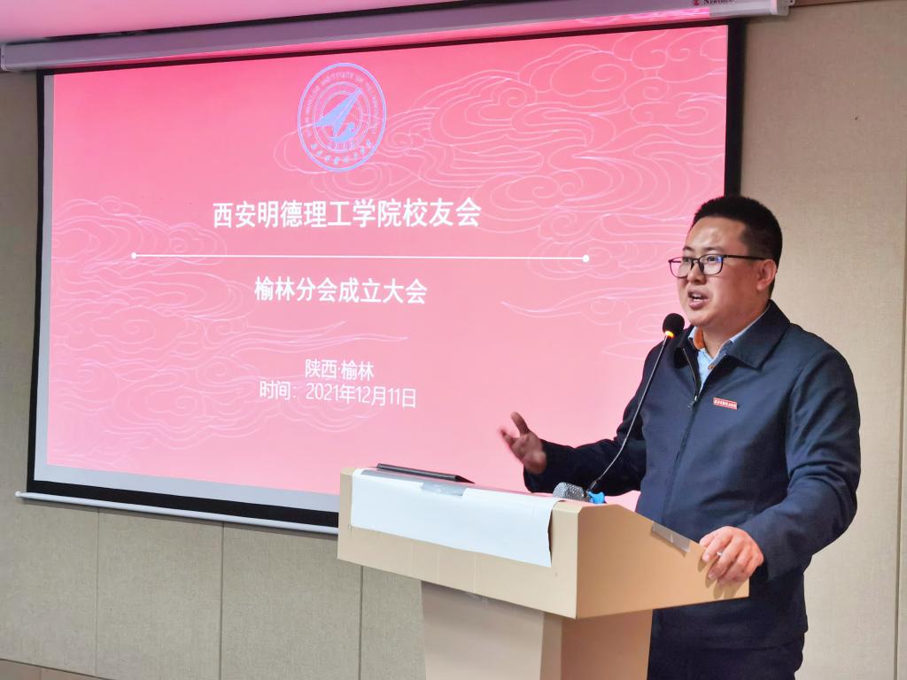 榆林分会会长李廷代表首届理事会发言,他感谢母校对榆林分会的支持与帮助,为榆林校友提供了沟通联络、情感交流的平台;他与校友们共同回忆明德时期的美好时光:“中心广场多彩的学生活动、小吃城里可口的饭菜、图书馆上空闪烁的星空照亮着勤奋学习的明德学子……”。李廷表示,作为榆林分会的会长,今后一定在母校的关心下,在榆林地区广大校友的支持下,竭尽全力建设好榆林分会这个大家庭。