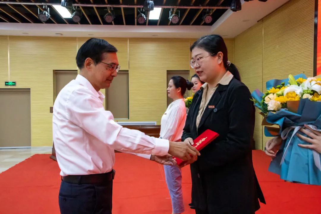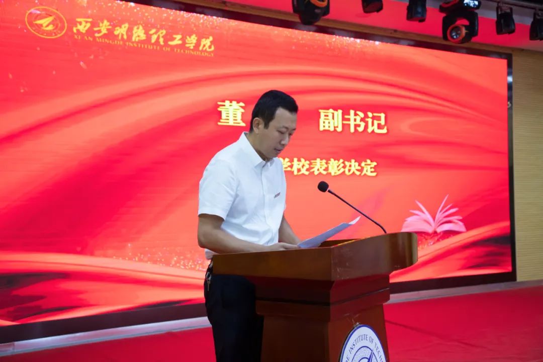 副校长庾鲜海、校党委副书记董昊分别宣读了省级和校级表彰决定,希望受表彰的同志珍惜荣誉、再接再厉,充分发挥模范带头作用,在教育教学各项工作中不断取得新的成绩。同时号召全校教职工要以受表彰的先进典型为榜样,爱岗敬业、踏实勤奋,踔厉奋发新征程。