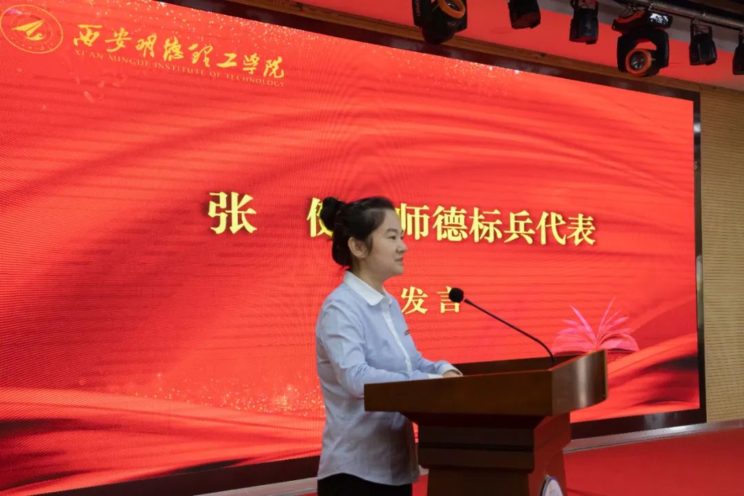 教师代表,学校师德标兵获得者张健老师从严于律己、以“德”立身,内强素质、以“精”授业,真心真情、以“爱”育人等三个方面分享了自己从教以来的经验和感悟。
