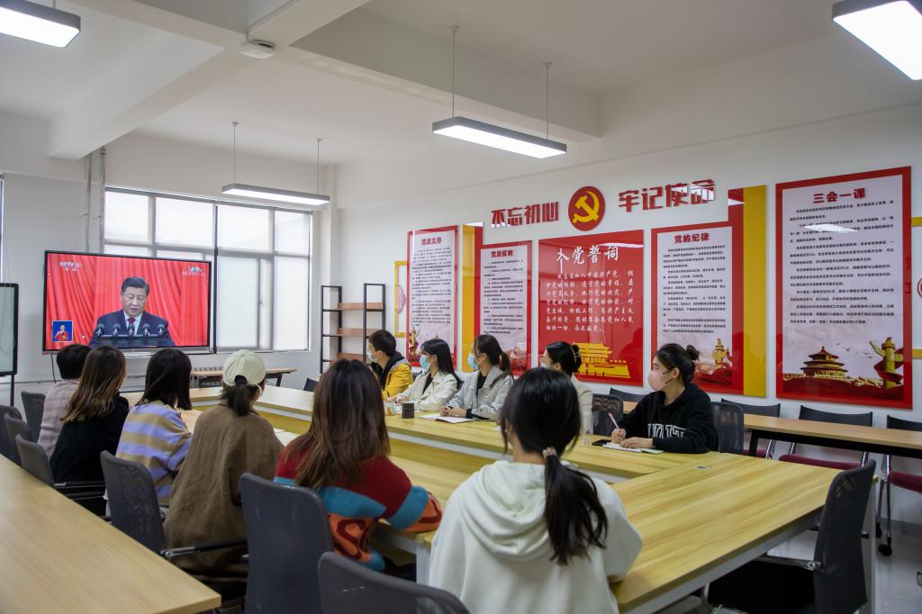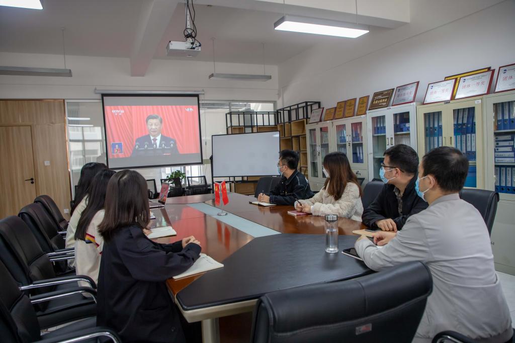 全校各会场师生以饱满的热情和昂扬的精神,认真聆听、仔细记录,气氛热烈而庄重。大家一致认为:习近平总书记的报告气势恢弘、大气磅礴、振奋人心,是“中国之治”的时代宣言、马克思主义的理论飞跃、亿万人民的幸福指南。党的十九大以来的五年,是极不寻常、极不平凡的五年,以习近平同志为核心的党中央统筹中华民族伟大复兴战略全局和世界百年未有之大变局,就党和国家事业发展作出重大战略部署,弘扬伟大建党精神,自信自强、守正创新,踔厉奋发、勇毅前行,团结带领全党全军全国各族人民有效应对严峻复杂的国际形势和接踵而至的巨大风险挑战,以奋发有为的精神把新时代中国特色社会主义不断推向前进,攻克了许多长期没有解决的难题,办成了许多事关长远的大事要事,推动党和国家事业取得举世瞩目的重大成就。