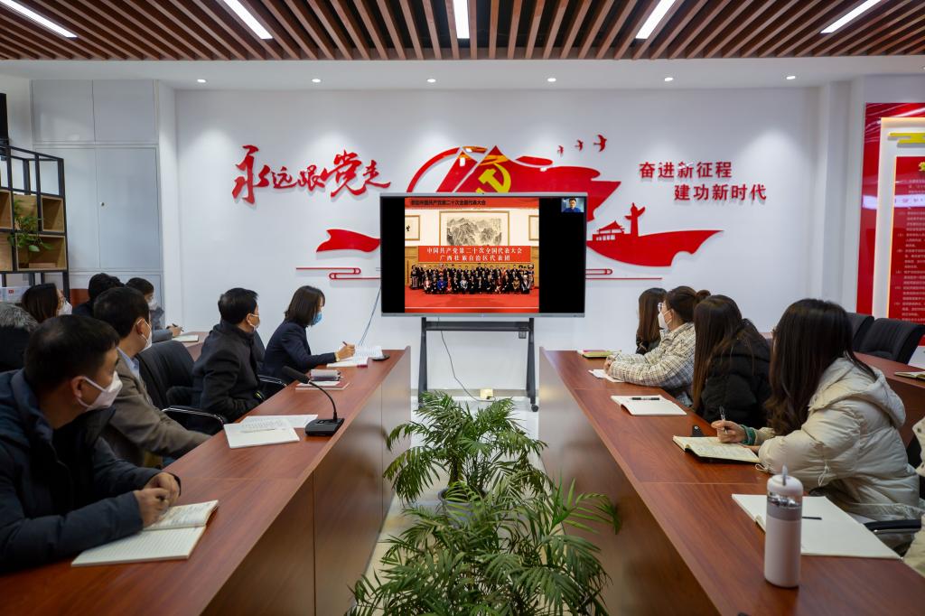 12月7日上午,学校特邀党的二十大代表、广西汽车集团有限公司首席技能专家郑志明为师生作党的二十大精神宣讲报告。报告会在学校党群服务中心以线上线下相结合的方式进行。校党委副书记董昊主持报告会。