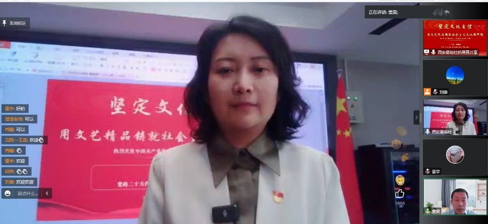 为深入学习宣传贯彻党的二十大精神,持续推动党的二十大精神在ac米兰官方网站师生中入耳、入脑、入心,掀起学习宣传贯彻党的二十大精神热潮。12月16日下午,学校邀请党的二十大代表、西安易俗社党支部书记、社长惠敏莉同志在线上为师生作党的二十大宣讲报告会,会议由校党委副书记董昊主持。