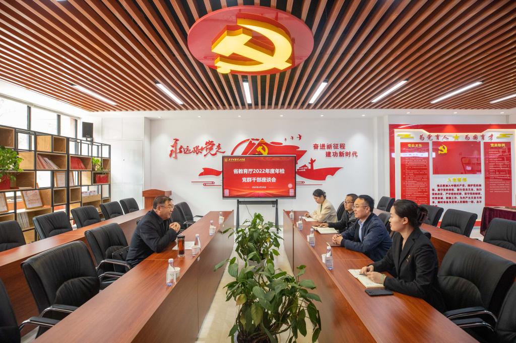 汇报会由省教育厅校外监管处三级调研员徐照民主持,学校校长杨健君、党委书记阎东明、常务副校长王志刚、副校长王斌宁、党委副书记董昊、财务总监马晓军,以及各职能部门负责人参加。