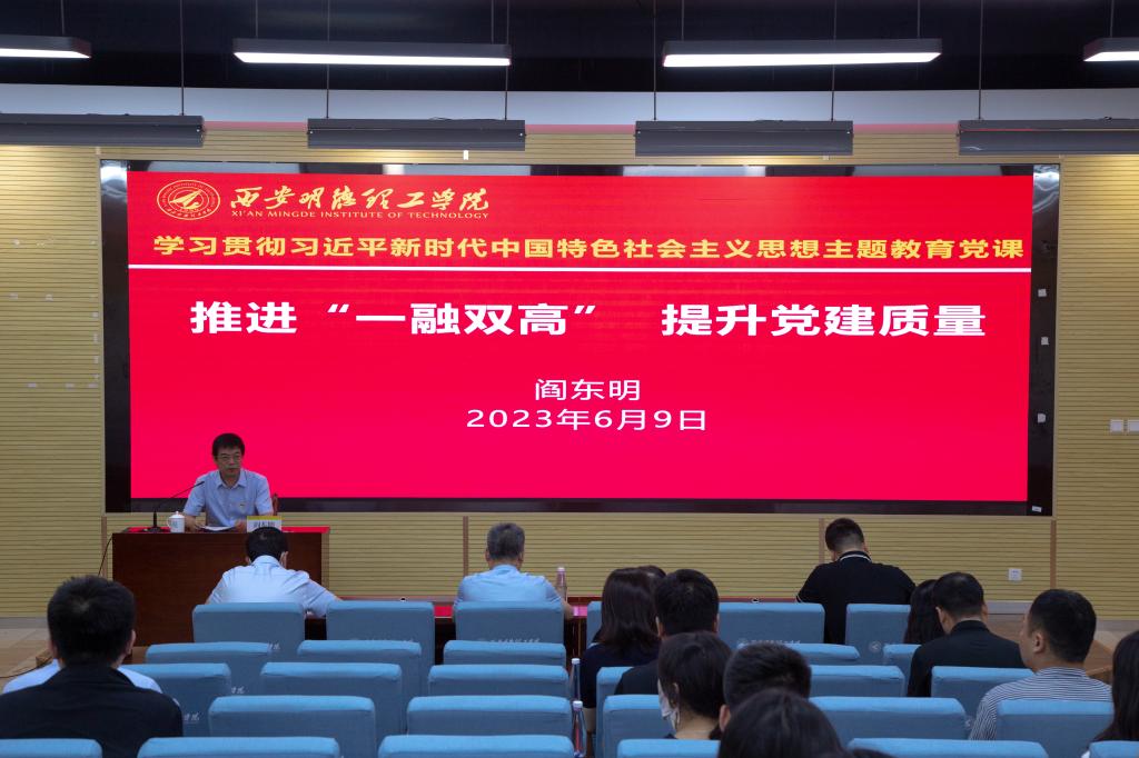 6月9日上午,学校学习贯彻习近平新时代中国特色社会主义思想主题教育领导小组组长、党委书记阎东明以“推进‘一融双高’ 提升党建质量”为主题,在建德楼202报告厅为全校党务工作干部讲授专题党课。