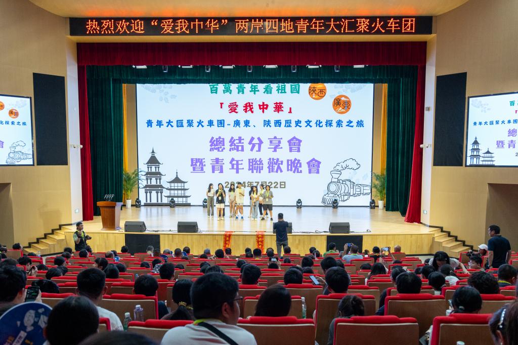 在总结分享会暨青年联欢晚会上,来自香港、澳门、台湾、广州、西安的青年学生们带来了文艺表演、分享了本次行程的所感所获。本次“火车团”之旅在欢乐的联欢会中圆满结束。活动的顺利开展,加深了两岸四地青年对“陕”丰富历史文化遗产、人情风俗、社会变迁的认知。推动了青年“交往、交流、交心、交融”,加强彼此之间思想交流、文化传播。同时也促使两岸四地青年自觉做中华优秀传统文化的弘扬者、做青年交流的推动者,以己为圆心,带动更多青年朋友融入祖国各地区发展建设。