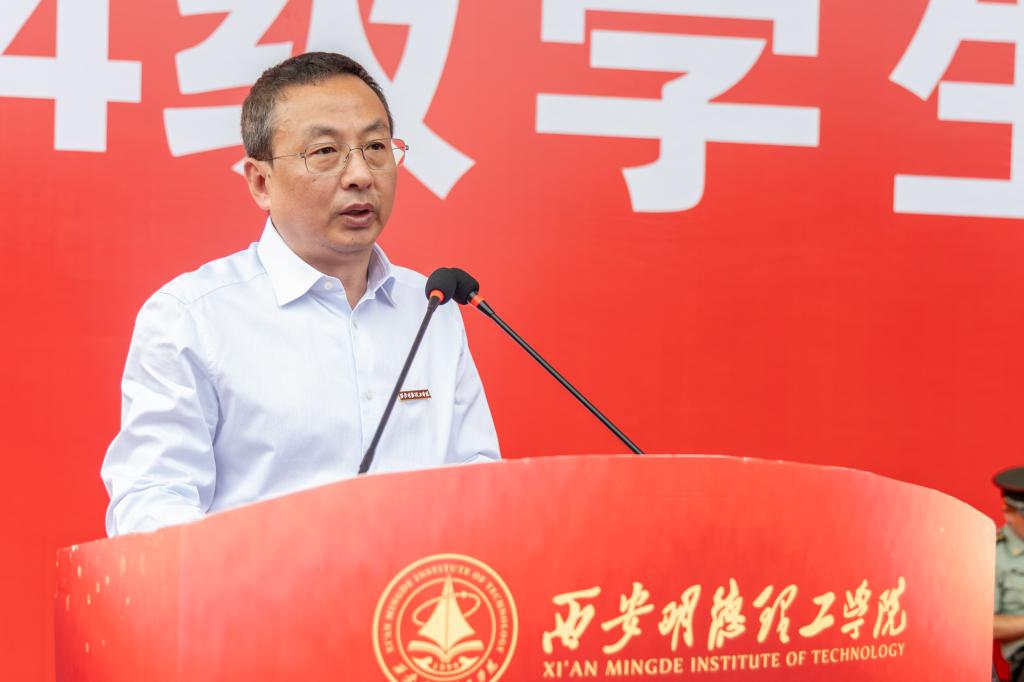 同时他对2024级全体新生提出三点建议:一是要求真务实、堪当栋梁。学生的主业就是学习知识,在学习阶段一定要把基石打深、打牢,做到求真理、悟道理、明事理,丰富学识、增长见识。珍惜在明德理工学习的大好时光,求真学问,练真本领,为争做国家和社会栋梁打好基础。二是要修养人格、高度自律。高尚的人格是一个人在社会立足的基本,坚韧不拔的毅力是成就事业的基础。希望同学们心怀感恩,善良宽厚包容;修养品行,坚韧挺拔屹立,以高度的自律精神和不断求索的态度过好美好的大学生活,不负韶华、不负时代。三是要自信自强、刚健有为。生逢伟大时代,作为明德理工的学子,要坚定不移听党话、跟党走,努力涵养天行健、君子以自强不息的精神气质,在强国建设、民族复兴伟业中,以自己的扎实学识和辛勤努力,担当重任、奋斗有为,展现新时代青年昂扬的精神风貌。