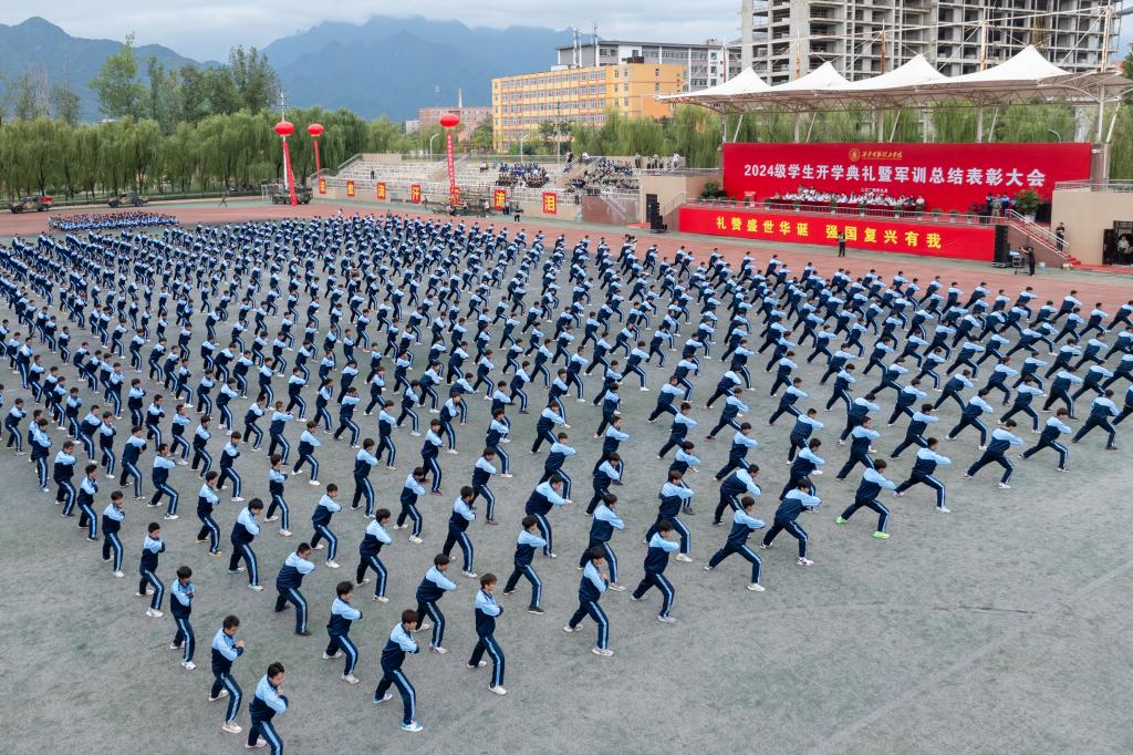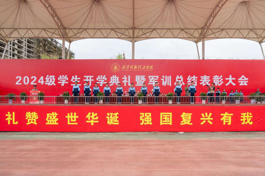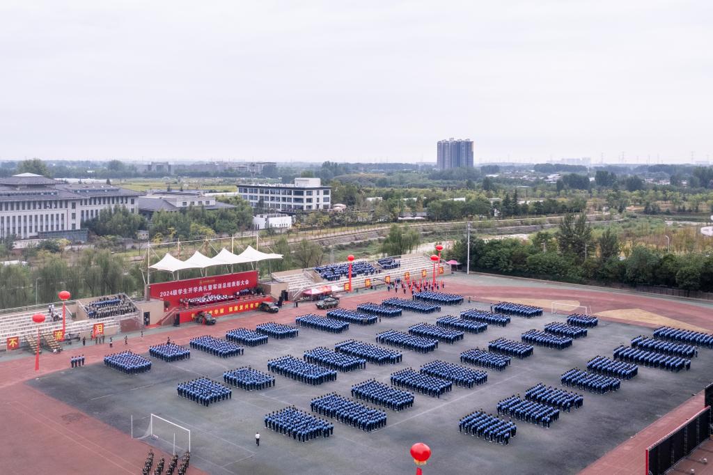 9月21日上午,学校2024级学生开学典礼暨军训总结表彰大会在学校运动场隆重举行。陕西金叶科教集团副总裁秦忠,董事局秘书闫凯,明德源教育集团助理总裁兼常务副总裁、学校副董事长张琳,学校校长王志刚,党委书记马川鑫,长安区人民武装部部长张引良,明德源教育集团财务总监田雪,学校副校长朱延波、陈鹏,财务总监马晓军,学校军训团团长张军闯出席大会,明德源教育集团、学校各学院、职能部门、教辅单位领导,全体军政干部、2024级全体学生、家长代表参加大会。会议由学校党委副书记、副校长、军训团政委刘星主持。