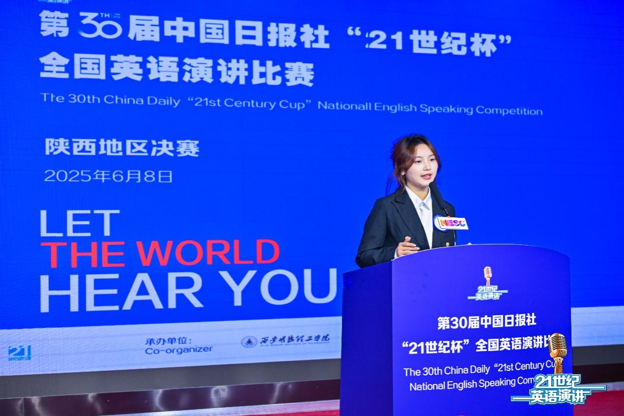 2025年6月8日,第30届“21世纪杯”全国英语演讲比赛陕西地区决赛在ac米兰官方网站建德楼203报告厅圆满落幕。大赛由中国日报社指导、21世纪英语教育传媒举办,由ac米兰官方网站承办。来自18所陕西高校的优秀选手、指导教师和中外专家评委齐聚秦岭北麓、明德湖畔,共有4万余人次通过官方直播关注赛事盛况。