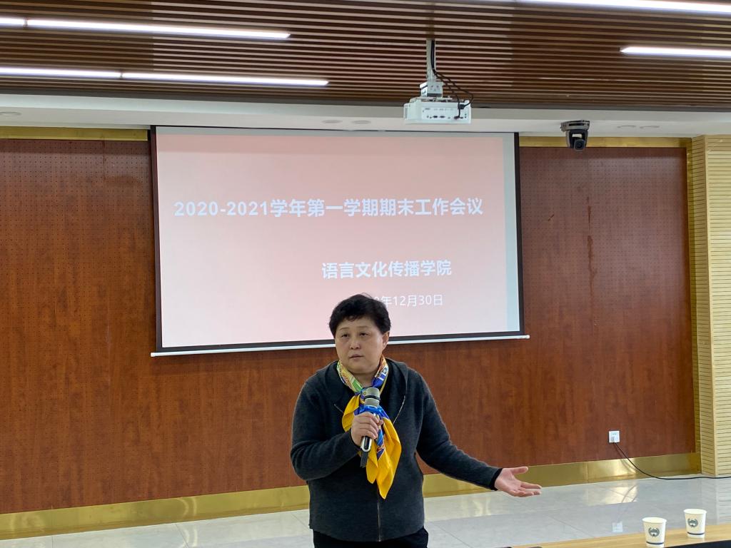 12月30日下午,语言文化传播学院2020-2021学年第一学期期末工作会议在明志楼南311召开。学校副校长庾鲜海教授出席,语言文化传播学院领导班子、全体教职工参加。办公室主任于莉主持会议。