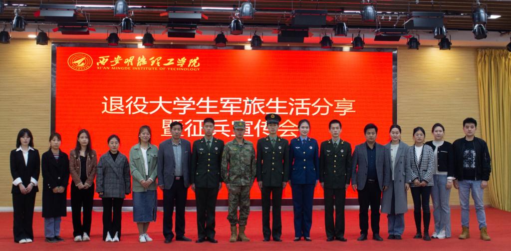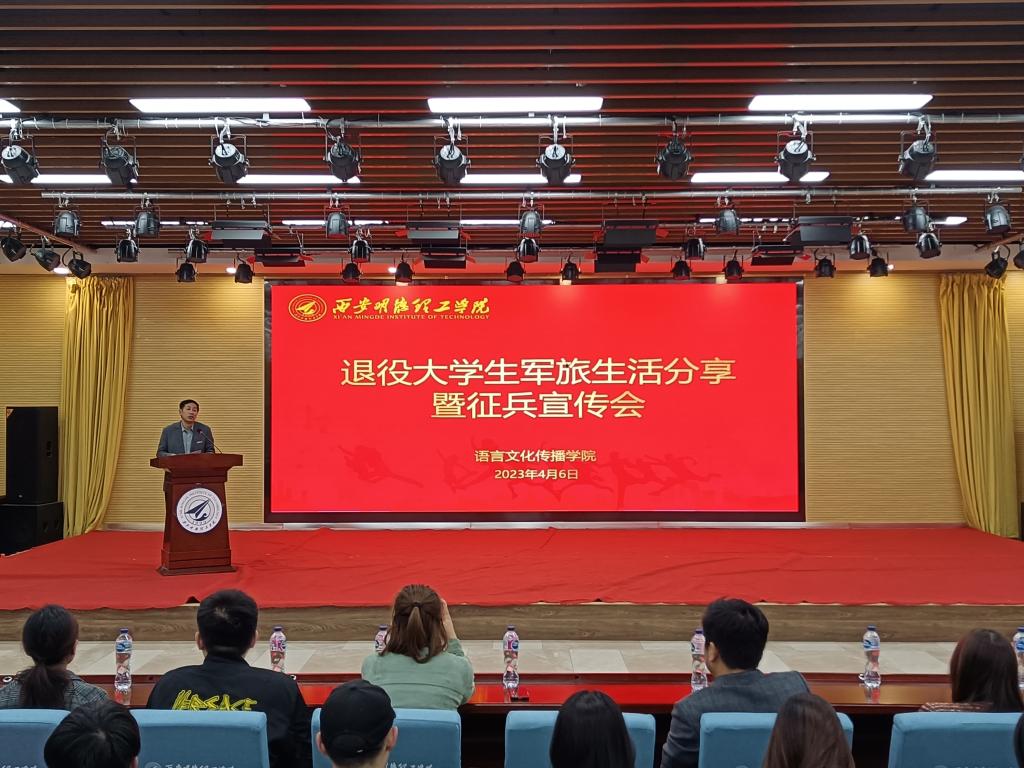 为进一步推进大学生爱国主义精神,加强国防教育,强化青年学生爱军拥军参军意识。4月6日晚语言文化传播学院在建德楼203举行退役大学生军旅生活分享暨征兵宣传会。本次活动由2022级辅导员黄雪琪主持,学院5名优秀退役学生应邀参与分享。学校征兵工作站站长李传斌,党委学生工作部蒋昱辰,学院党委副书记杨峰,全体辅导员,学院400余名学生参加了此次分享会。