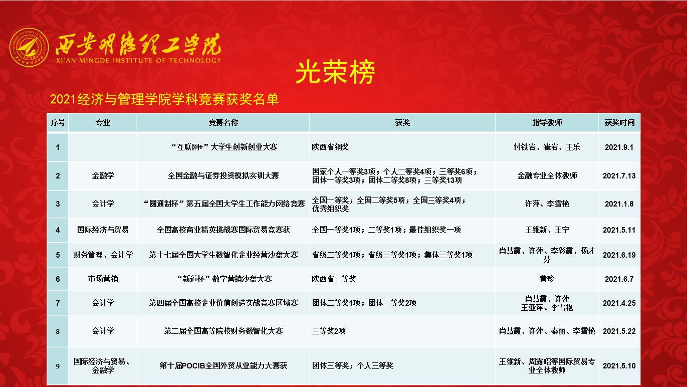 2021年经济与管理学院荣誉榜