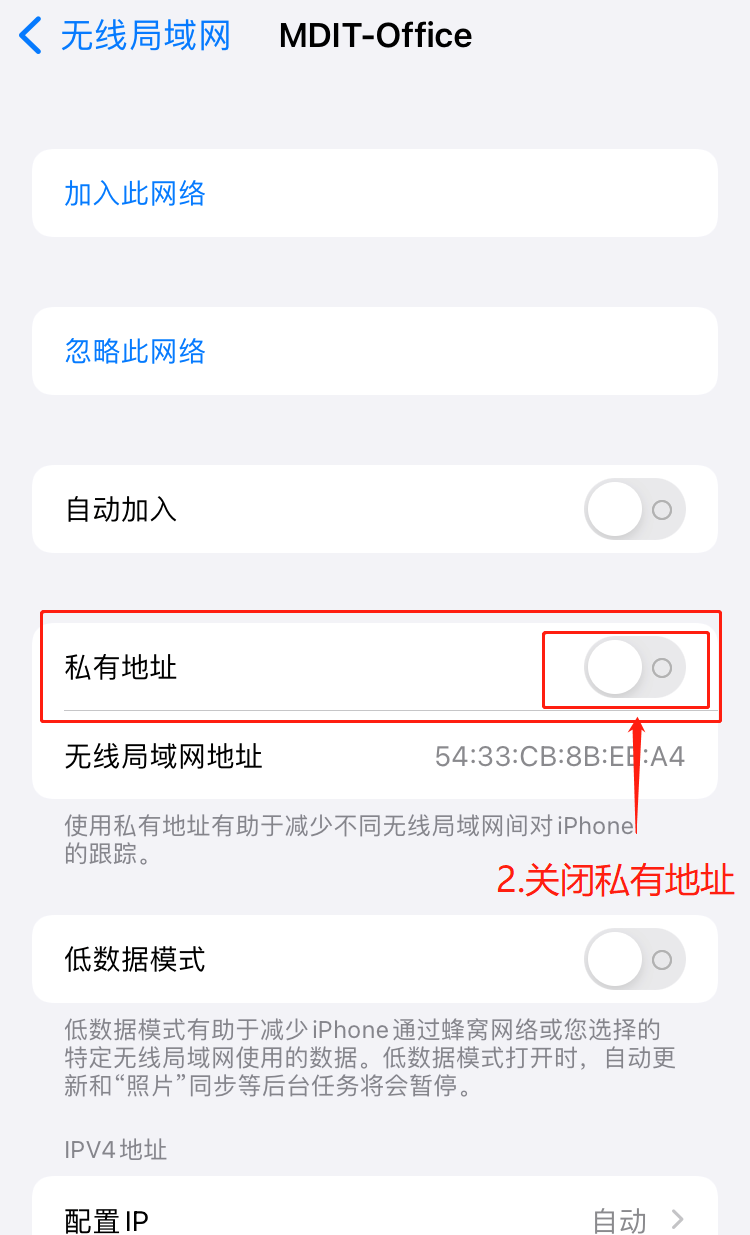 第一步:点击【wifi设置】 第二步:关闭【私有地址】